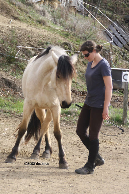 Cette belle et douce isabelle a la chance de vivre avec deux copains au pré à côté de chez sa propriétaire, avec qui elle partage des sorties en extérieur hebdomadaires. Un petit clin d'oeil à son compagnon de pré et de sortie (PSA par Baltik des Ors) que nous avions eu en rééducation (embarquement et manipulation des pieds) l'hiver dernier. Nous souhaitons à ce sympathique couple de cavaliers plein de belles années de balades avec leurs chevaux!